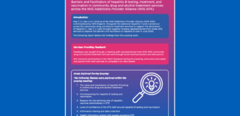 Read our report on the Barriers and Facilitators of hepatitis B testing, treatment, and vaccination in community drug and alcohol treatment services across the NHS Addictions Provider Alliance (NHS APA).